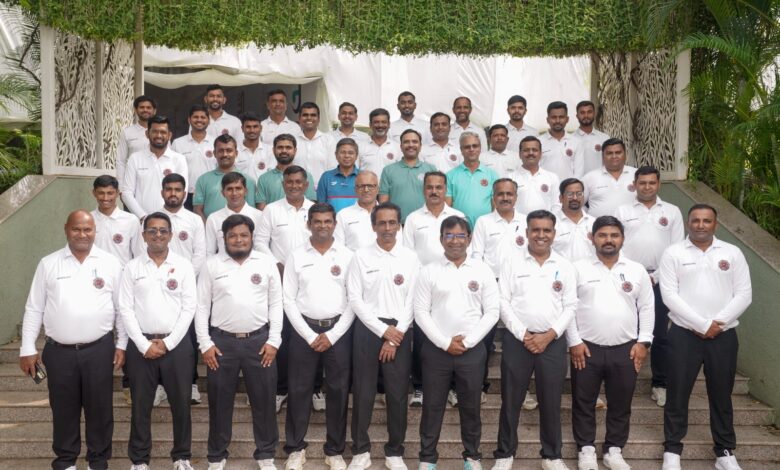 जळगाव दि. 15 प्रतिनिधी – जळगाव येथील जैन हिल्स वरील सुबीर बोस हॉल मध्ये उत्तर व मध्य महाराष्ट्रातील क्रिकेट पंचाच्या कार्यशाळेचे आयोजन जळगाव जिल्हा क्रिकेट असोसिएशन तर्फे दि. १३ व १४ सप्टेंबर २०२५ दरम्यान करण्यात आले होते. या कार्यशाळेत ४५ जळगाव सह नंदुरबार, धुळे, नाशिक, अहिल्यानगर, तसेच छत्रपती संभाजी नगर येथील पंच सहभागी होते. कार्यशाळेला प्रशिक्षक म्हणून सर्वश्री अजय देशपांडे, (छत्रपती संभाजी नगर) संदीप चव्हाण (नाशिक), मंगेश नार्वेकर (रत्नागिरी) व संदीप गांगुर्डे (जळगाव) यांचा समावेश होता.