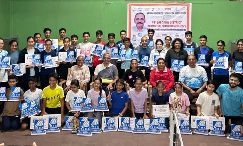 जळगाव, दि. २२ प्रतिनिधी – जळगाव जिल्हा बॅडमिंटन असोसिएशन व जैन स्पोर्ट्स अकॅडमी आयोजित व जैन इरिगेशन सिस्टीम लिमिटेड द्वारे प्रायोजित जळगाव जिल्हा बॅडमिंटन चॅम्पियनशिप २०२५ चे आयोजन दि. १९ ते २१ सप्टेंबर २०२५ दरम्यान जळगाव जिल्हा क्रीडा संघ येथील बॅडमिंटन हॉलमध्ये करण्यात आले होते. ही स्पर्धा जळगावचे वरिष्ठ खेळाडू अविनाश दामले यांच्या पुण्यतिथीच्या स्मरणार्थ घेण्यात आली. स्पर्धेमध्ये ११, १३, १५, १७, १९ वर्षाआतील वयोगटातील मुले व मुलींचे व ३५+, पुरुष व महिला एकूण १८४ खेळाडूंनी सहभाग नोंदविला होता.