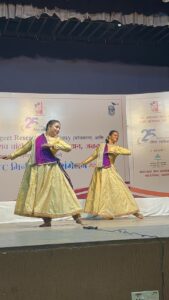 आजचे प्रथम सत्र युवा आश्वासक नृत्यांगना नुपूर खटावकर व आर्या शेंदुर्णीकर या स्थानिक कलावंतांनी अप्रतिमरित्या सादर केलं. कथक नृत्य म्हटलं की ताल पक्ष हा आलाच त्याचे सौंदर्य नुपुरने आपल्यासमोर उलगडून दाखवले ते ताल तीनताल ने यात परंपरेप्रमाणे उठान, थाट, आमद, तसेच काही तुकडे, व तिहाई प्रस्तुत केले. त्यानंतर आर्याने एक अप्रतिम अशी कजरी सादर केली कजरी म्हणजे काळे ढग, पावसाचे वातावरण तयार होते तेव्हा काळे ढग जमतात, मग हलका हलका पाऊस पडायला लागतो, आणि मातीचा सुगंध दरवळतो पण हेच ढग माझे वैरी झाले आहेत कारण त्यांच्यामुळे मला माझ्या नायकाला भेटता येत नाहीये. पण तरीही त्याला भेटायला जाण्यासाठी ती खूप प्रयत्न करते कधी तिची ओढणी तर कधी सुप डोक्यावर घेऊन जाण्या चा प्रयत्न करते पण तरीही वाटेत येणारा अडथळा म्हणजे खड्डे, साप यावर मात करीत ती पूर्ण भिजते. पण तरीही तिला नायकाला भेटता येत नाही म्हणून ती तिच्या सखीला म्हणते “सखी बैरन भाई बरखा” ही डॉ. प्रभा अत्रे यांची देस रागातील बंदिश कजरीच्या माध्यमातून पेश करण्यात आली. त्यानंतर आर्या व लो पुरणे चतुरंग म्हणजे चार अंग अर्थात तरणा सरगम साहित्य आणि नृत्याचे बोल या चारही अंगांना एकमेकात सुंदर रित्या होऊन तयार होतो तो चतुरंग “उदानी दानी दिम” हे तराण्याचे बोल तर तर “श्याम बजाये ऐसी मुरलिया” हे साहित्याचे बोल यात त्यांनी दाखवले की कृष्णाच्या बासरी वादनामुळे मोर जागेवरच थांबतो. मासा पोहण्याचे थांबवतो. तर नदी पण उलट व्हायला लागते. कारण कृष्णाच्या बासरी वादनाने सगळेजण आपली शुद्ध हरतात. आजच्या या नृत्याची सांगता नुपूर व आर्या दोघांच्या चतुरंगने झाली आणि रसिकांनी त्यांना आनंदाने डोक्यावर घेतले.
