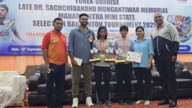 जळगाव दि. 15 प्रतिनिधी – स्व. डॉ. सच्चीदानंद मुनगंटीवार मेमोरियल महाराष्ट्र मिनी स्टेट सिलेक्शन बॅडमिंटन स्पर्धा- 2025 ही चंद्रपूर येथे…
